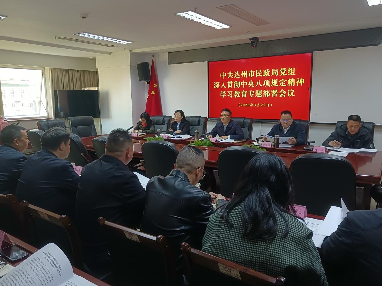 3月25日上午,市民政局组织召开党组(扩大)会议,专题部署深入贯彻中央八项规定精神学习教育工作。局党组书记、局长邓奎松主持会议并讲话,局党组班子成员和机关各科室、直属单位负责同志参加会议。
