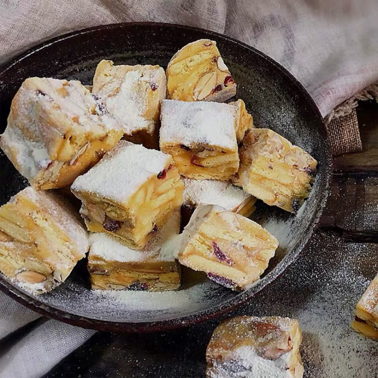 乌梅酥:精挑细选乌梅原材料,每一道食材都通过甄选,对于乌梅酥坚持“0”添加。纯手工制作,少了一些工整却多了一份自然。