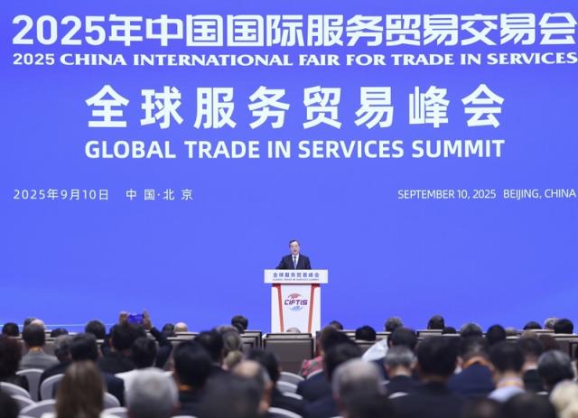 9月10日,2025年全球服务贸易峰会在北京举行。中共中央政治局常委、国务院副总理丁薛祥出席峰会并发表主旨讲话。新华社记者 丁林 摄