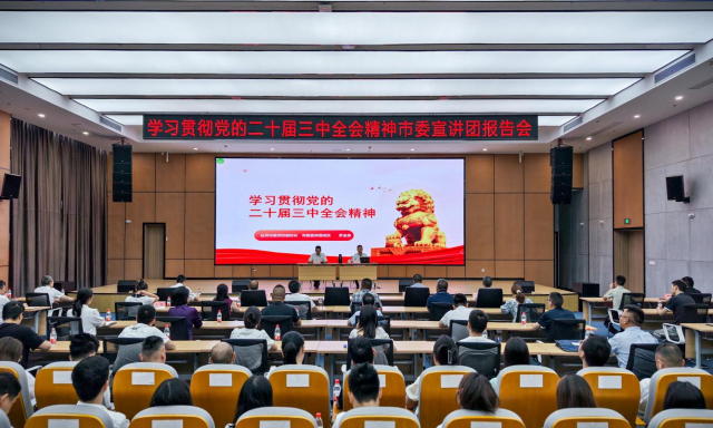 按照市委学习贯彻党的二十届三中全会精神安排部署,2024年9月10日—12日,市国资委系统组织召开5场次学习贯彻党的二十届三中全会精神宣讲报告会,市委宣讲团企业分团团长、市国资委党委书记熊明霜主持宣讲报告会,市委宣讲团企业分团成员徐晓宗、罗金泉分别开展主题宣讲。