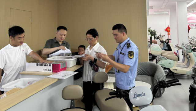 大竹县审计局在“两新”行动支持电动车以旧换新政策落实情况审计中,联合大竹县市场监督管理局开展实地核查,现场比对申报数据、查看销售台账和回收记录等资料,着力揭示申报不规范、审核关键环节把关不严、虚假交易套取补贴等问题,切实保障财政资金安全,维护电动自行车市场秩序、确保惠民政策精准落地。图为审计人员会同市场监管人员开展联动核查。