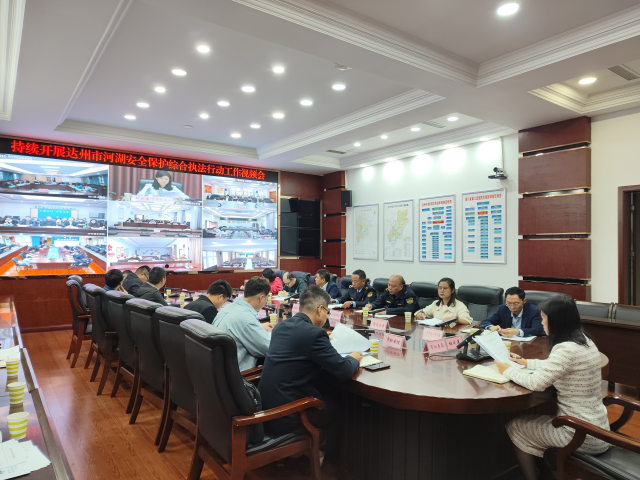 为推动达州市河湖安全保护综合执法行动工作持续强力开展,2024年10月17日,达州市水务局组织召开“持续开展达州市河湖安全保护综合执法行动工作视频会”。市水务局副局长杜成英主持会议并讲话,市中级人民法院、检察院、公安局、司法局、水务局、生态环境、交通运输、应急管理等八部门有关负责同志及各县(市、区)相关人员共102人参加会议。
