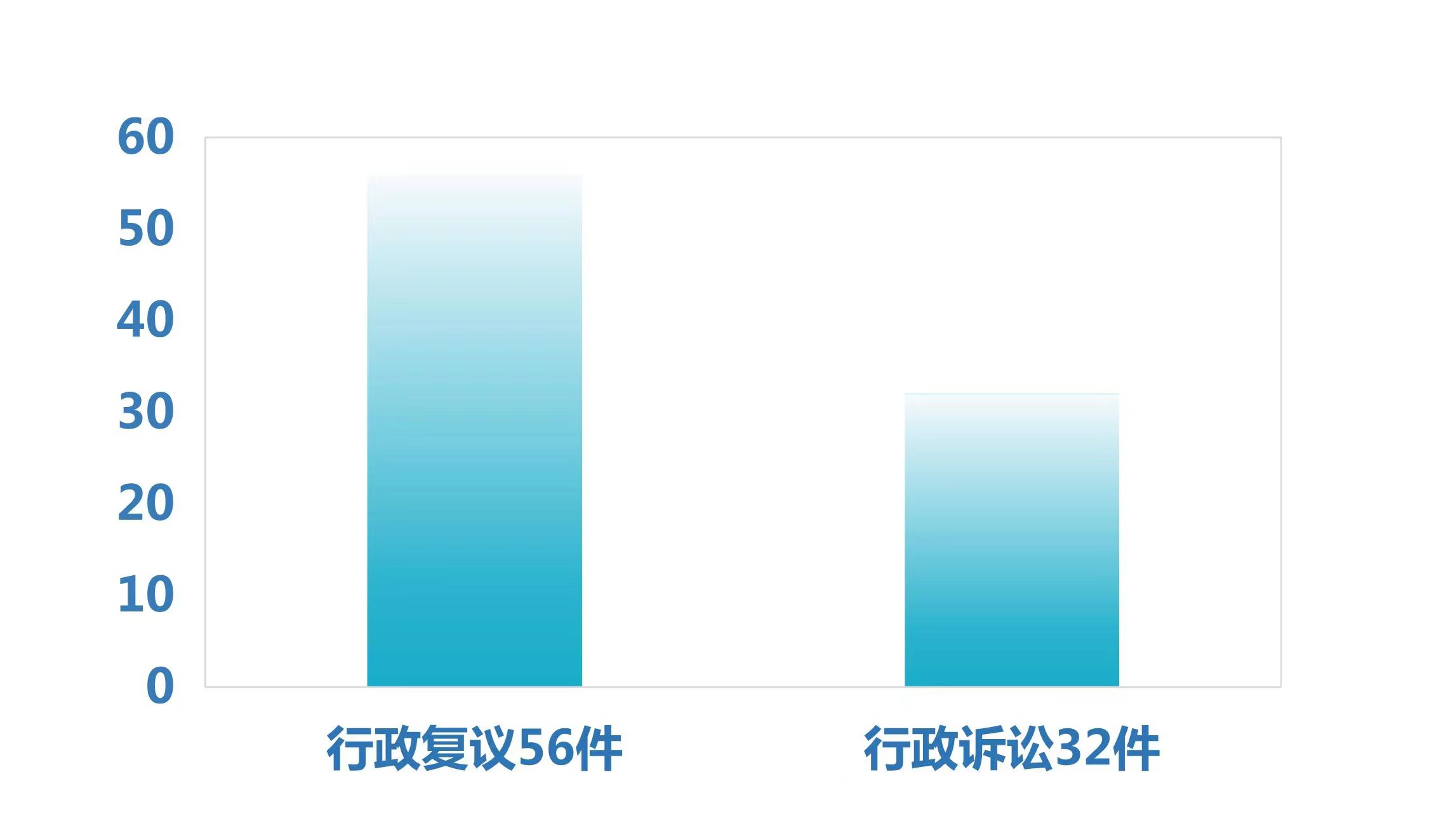 依法办理涉及政府信息公开的行政复议56件,行政诉讼32件。