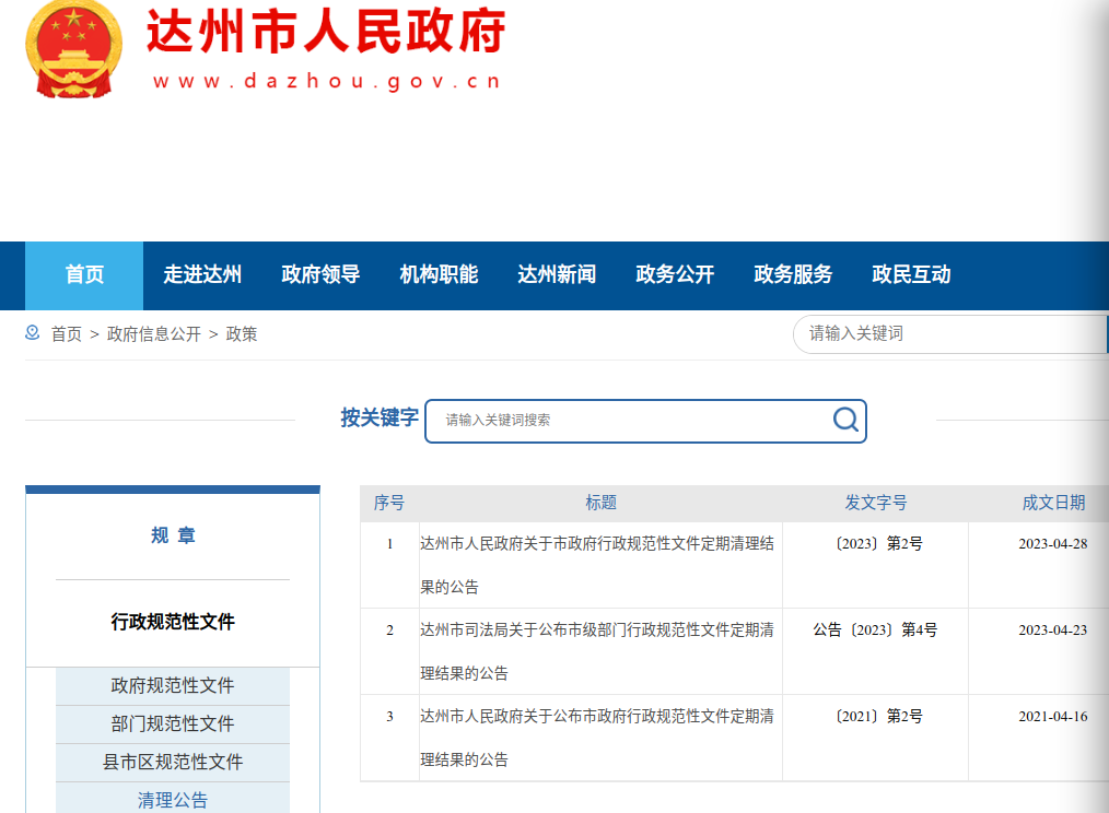 督促全市各级行政机关开展规范性文件清理,及时发布规范性文件清理结果公告,动态更新行政规范性文件有效性标注。