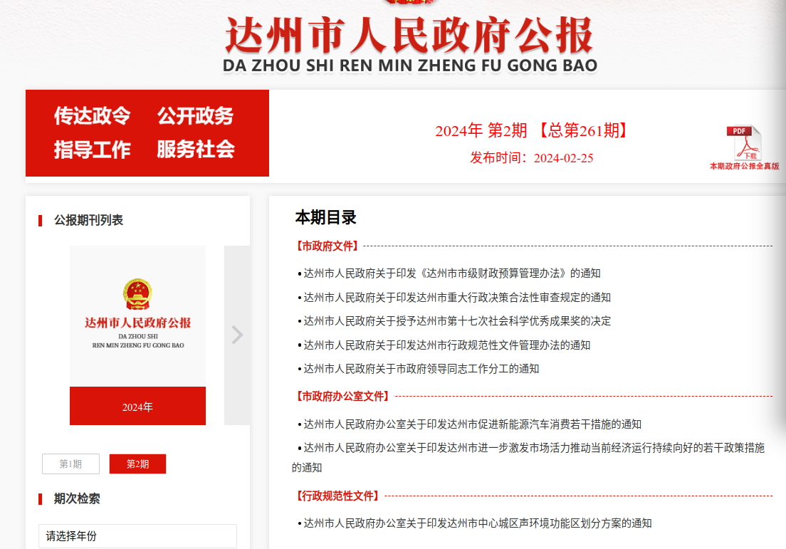 在政府网站首页设置政府公报电子版专栏,切实加强《 公报》数据库建设,做到电子版和纸质版同步发布、数据统一,全年共发行《 公报》12期,刊登文件114件。持续做好政策文件及解读信息推送工作,向省政府网站集约化平台推送政策文件及解读信息2740余条。