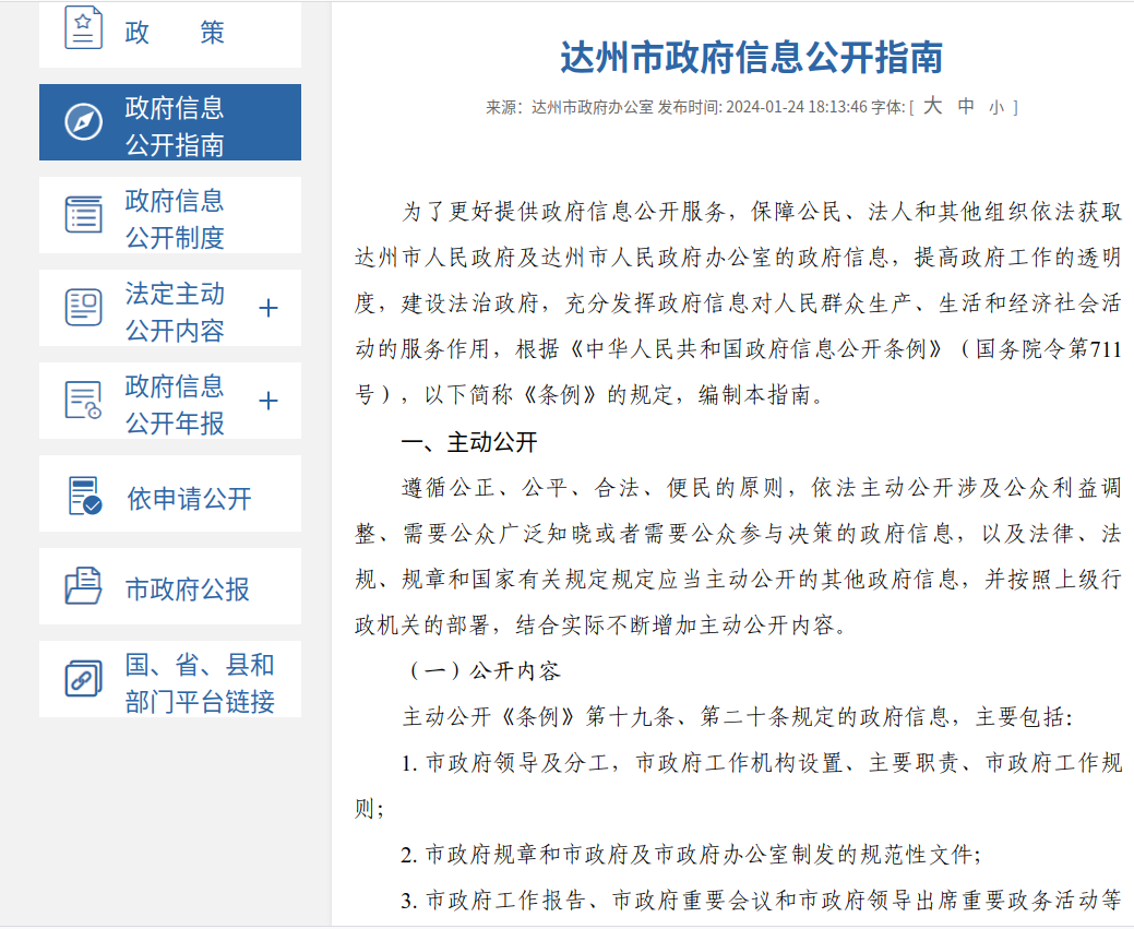 及时修订更新政府信息公开指南,对政府信息公开的公开内容、方式、渠道以及依申请公开等内容再明确和完善。