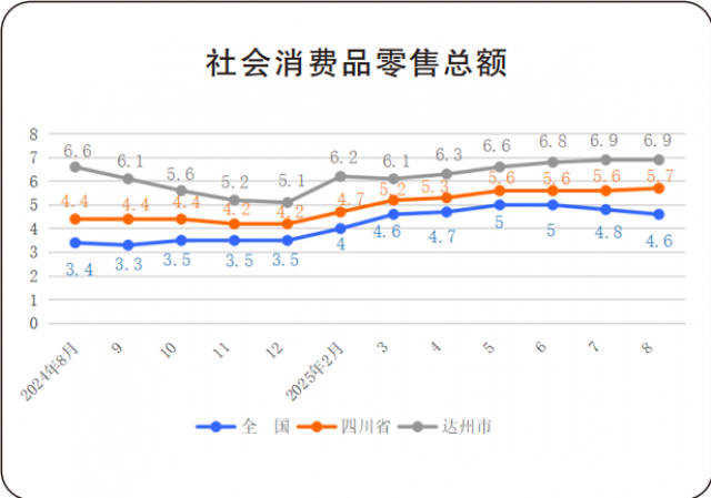 达州市8月份社会消费品零售总额增速